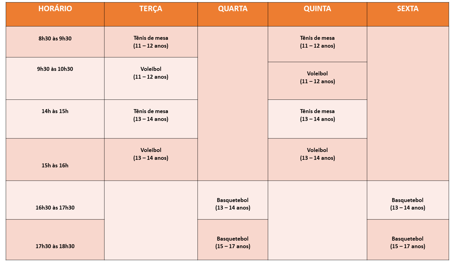 Vagas são limitadas e gratuitas para as modalidades de: vôlei, basquete e tênis de mesa