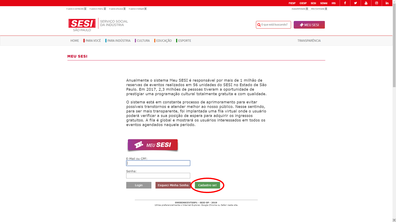 1. Entre no site sesisp.org.br/meu-sesi